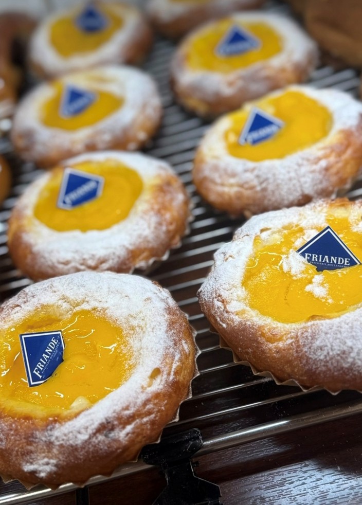 ホワイトチョコの入ったブリオッシュに酸味のあるパッ...