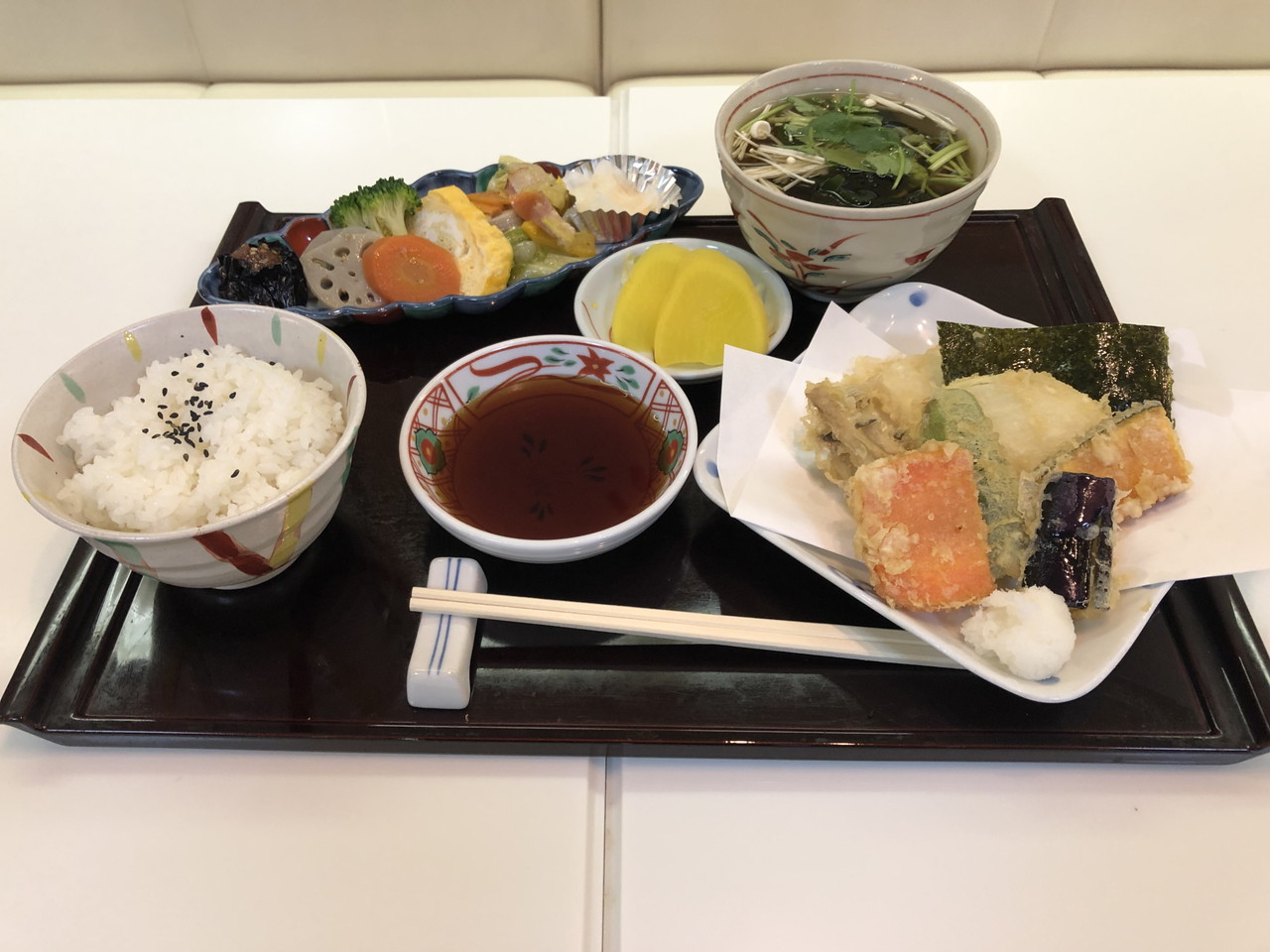 日替りおかずと野菜の天ぷらの定食